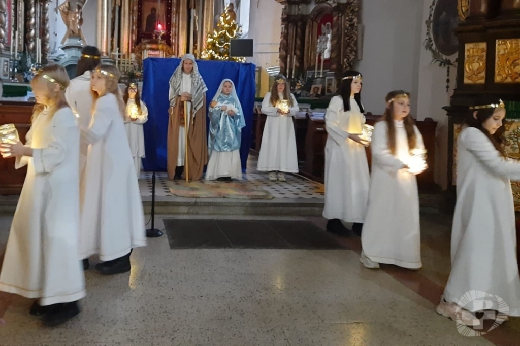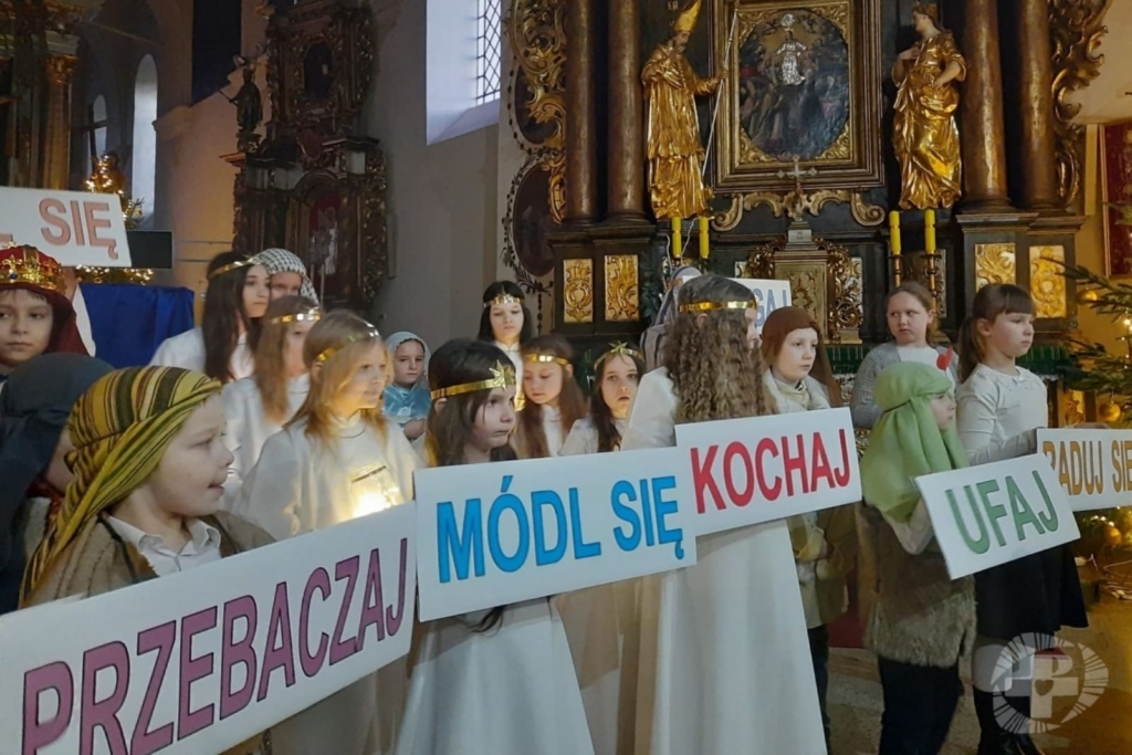 Dzieci ze świetlicy „Światełko Dzikuska”, przygotowane przez s. Teresę Brzozowską, wystawiły wzruszające przedstawienie bożonarodzeniowe, łączące tradycyjne jasełka z ewangelicznym przesłaniem aktualnym dla każdego z nas. Owocem pracy s. Teresy są także pisane przez nią ikony. Jej najnowsze dzieło, wystawione na bocznym ołtarzu, nie tylko zachwyca pięknem, ale też wprowadza w atmosferę modlitwy.